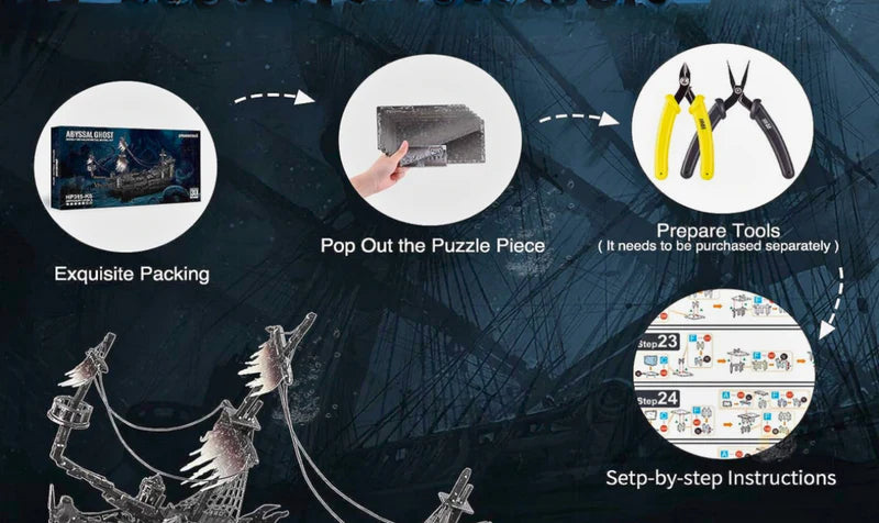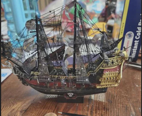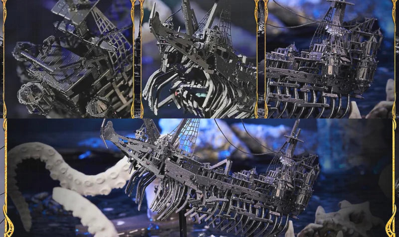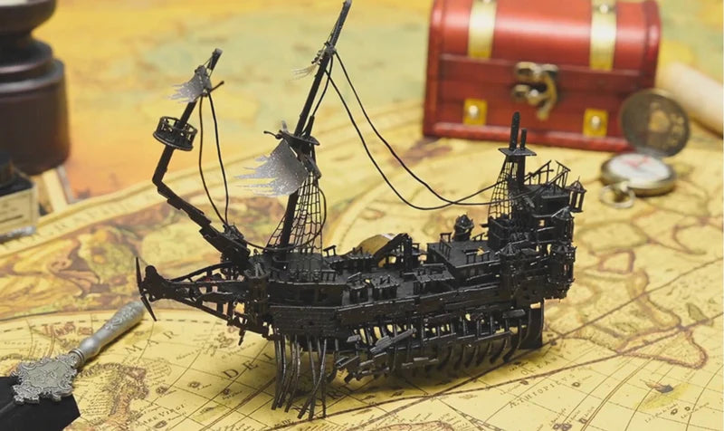 Vid montering replikerar denna trämodell skickligt det legendariska piratskeppet Havsspöket. Förbannad och strandad i Devil Delta, modellen hedrar detta formidabla fartyg och dess skelettbesättning och bjuder in dig på en historisk utforskning av sjöfartslore.