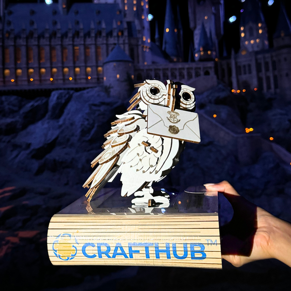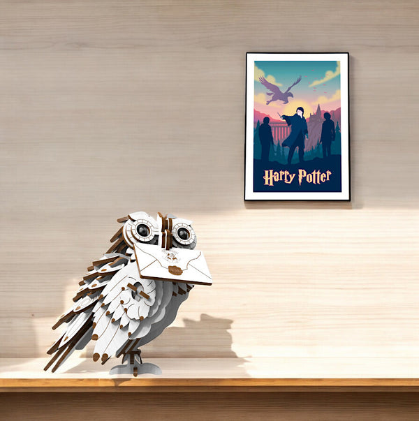 Varje fjäder är avbildad med laserskuren precision och skiktad för djup, vilket speglar Hedwigs distinkta utseende från filmerna.
