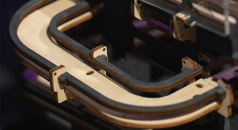 För att övervinna materialbegränsningar innehåller modellen höggenomskinlig akryl, vilket ger en futuristisk känsla till designen