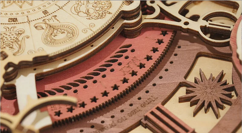 Urtavlan, som är intrikat graverad med de tolv zodiakkonstellationerna, utstrålar en känsla av vintage-elegans