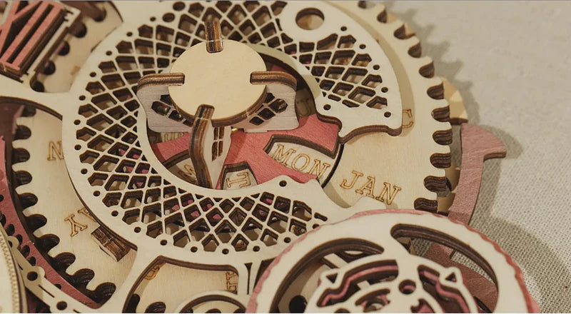 När du vrider på ratten hörs ett "klick"-ljud i trä, vilket skapar en mer interaktiv upplevelse mellan vägguret och användaren