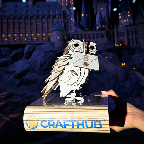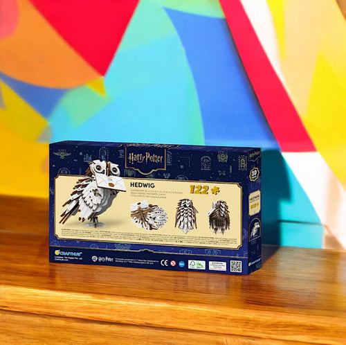 Intrikata mönster på vingarna och kroppen fångar Hedwigs ikoniska fjäderarrangemang, vilket gör henne trogen filmen.