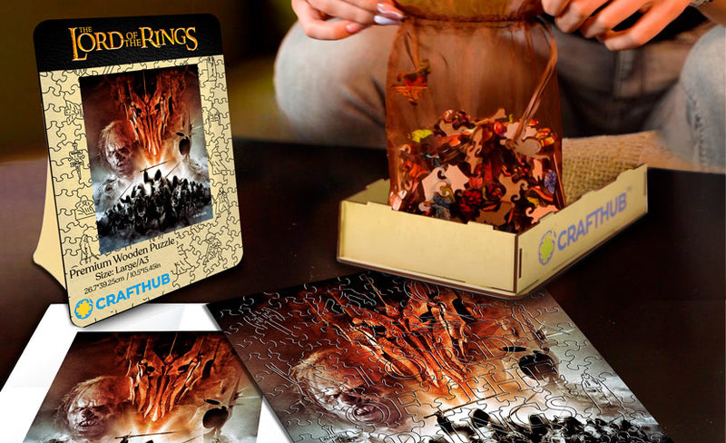 Med originalkonst direkt från den episka sagans filmiska källa firar denna serie pussel föreningen av autentiska 'Sagan om ringen'-bilder med den finaste pusselkonsten.