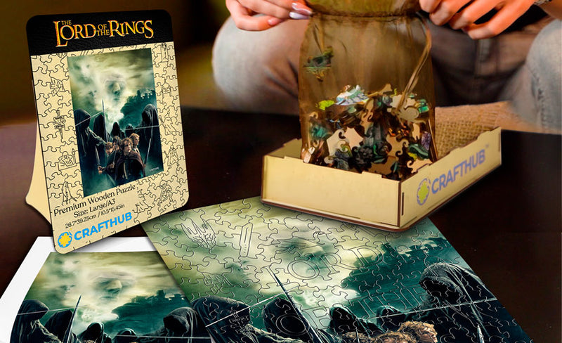 Med originalkonst direkt från den episka sagans filmiska källa firar denna serie pussel föreningen av autentiska 'Sagan om ringen'-bilder med den finaste pusselkonsten.