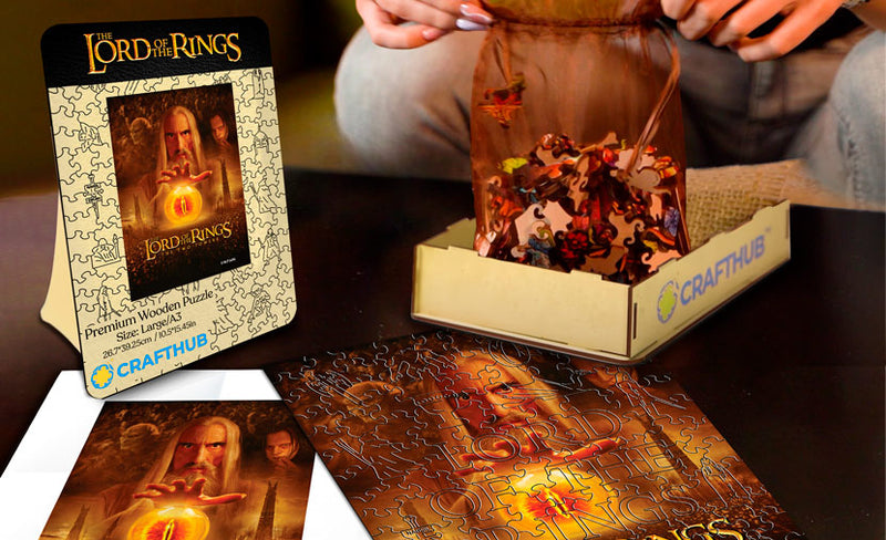 Med originalkonst direkt från den episka sagans filmiska källa firar denna serie pussel föreningen av autentiska 'Sagan om ringen'-bilder med den finaste pusselkonsten.