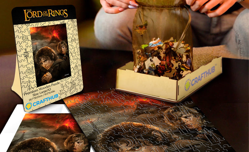 Med originalkonst direkt från den episka sagans filmiska källa firar denna serie pussel föreningen av autentiska 'Sagan om ringen'-bilder med den finaste pusselkonsten.