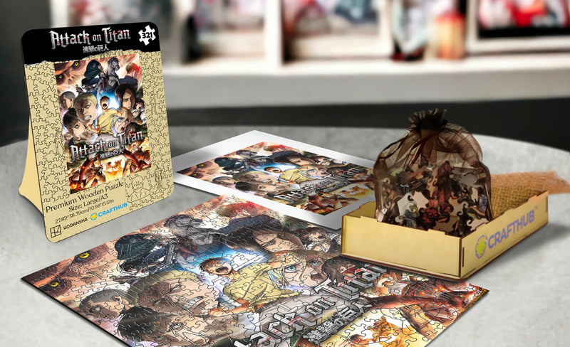 Avancerad UV-utskriftsteknik säkerställer ljusa och levande Attack On Titan-pusseldesign som blir ett fantastisk konstverk när den är färdig.