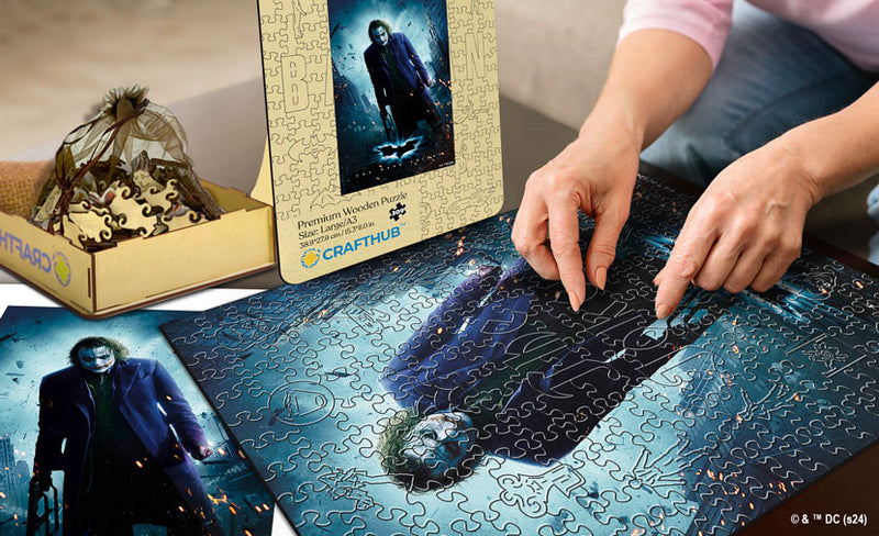 Med originalkonstverk direkt från den episka sagans filmiska källa, firar denna pusselserie föreningen av autentiska 'The Joker'-bilder med det finaste pusselläggningskonstnärskapet.