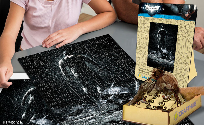 Med originalkonstverk direkt från den episka sagans filmiska källa, firar denna pusselserie föreningen av autentiska 'Batman'-bilder med det finaste pusselläggningskonstnärskapet.