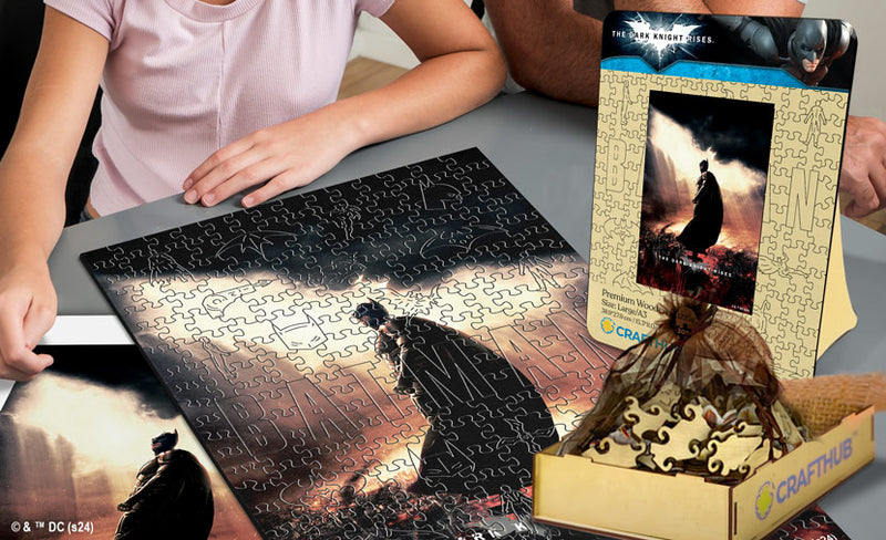 Med originalkonstverk direkt från den episka sagans filmiska källa, firar denna pusselserie föreningen av autentiska 'Batman'-bilder med det finaste pusselläggningskonstnärskapet.