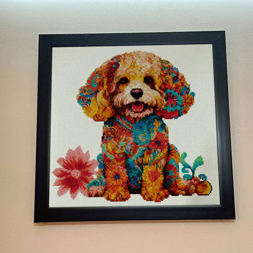 Älskade hunddesignen och det var så lugnande att bara ta bort saker från mitt sinne och arbeta med denna diamantmålning.