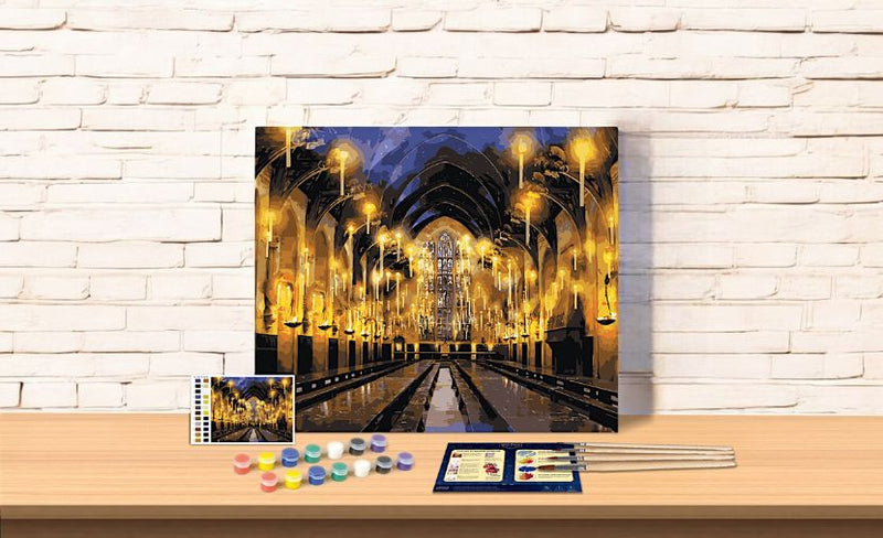 Allt du behöver ingår: Målarduk, akrylbaserade färguppsättningar, 4st penslar, referensblad och riktlinjer.