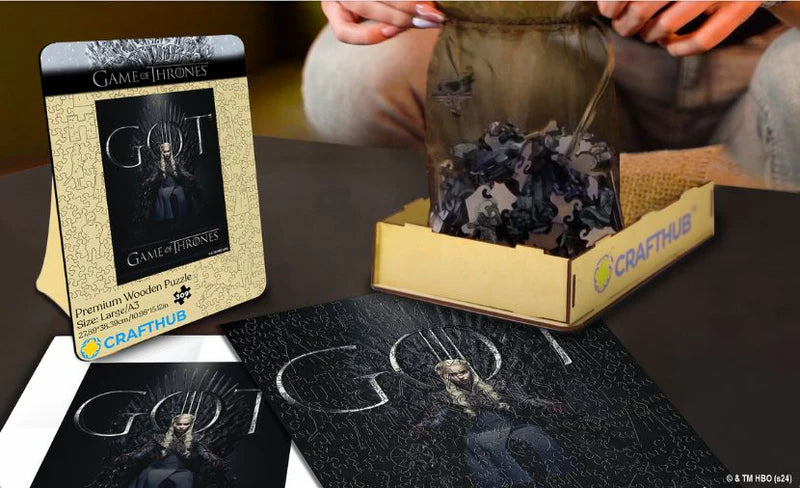 Med originalkonst direkt från den episka sagans filmatiska källa, firar denna serie pussel föreningen av autentiska 'Game of Thrones'-bilder med det finaste inom pusselkonst.