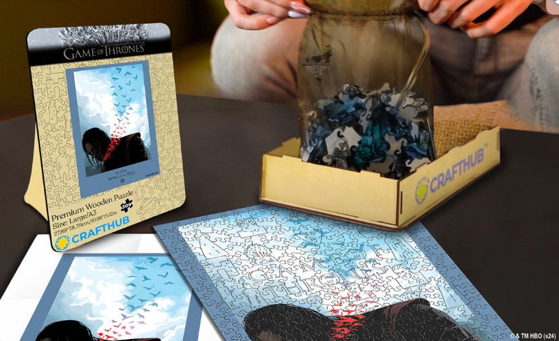 Med originalkonstverk direkt från den episka sagans filmiska källa, firar denna serie pussel föreningen av autentiska "Game Of Thrones" -bilder med den finaste pusseltillverkningen.