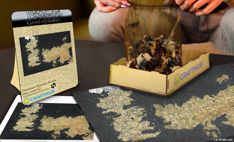 Med originalkonstverk direkt från den episka sagans filmiska källa, firar denna serie pussel föreningen av autentiska "Game Of Thrones" -bilder med den finaste pusseltillverkningen.