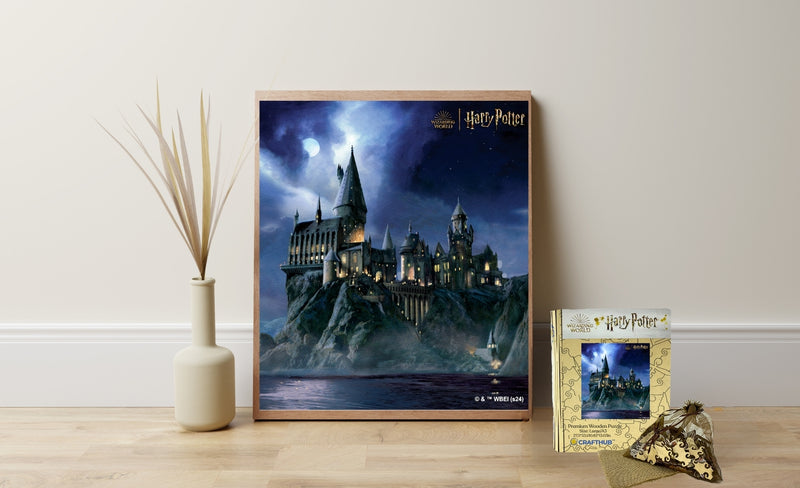 Med hjälp av de senaste UV-tryckteknikerna framhäver pusslet Hogwarts-slottets invecklade detaljer och färger under den ljusa stjärnhimlen för en imponerande konstvisning när det är färdigt.