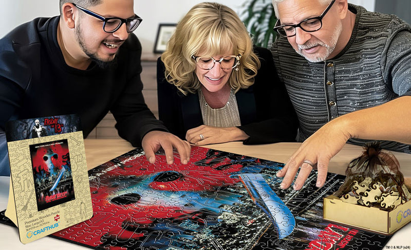 Med varje bit kommer du att väcka liv i de dimmiga skogarna i Camp Crystal Lake, den hotfulla silhuetten av Jason Voorhees och den kyliga atmosfären som hemsöker varje steg och förkroppsligar terrorn i Fredagen den 13:e.