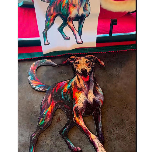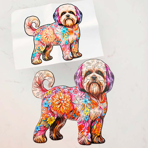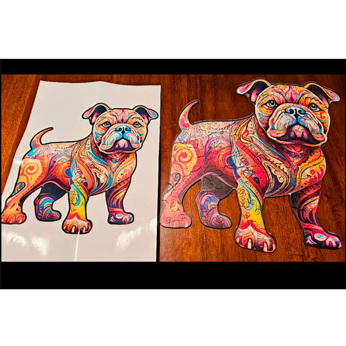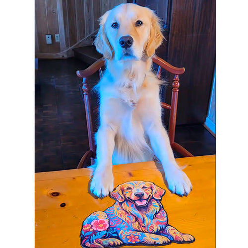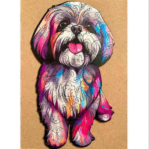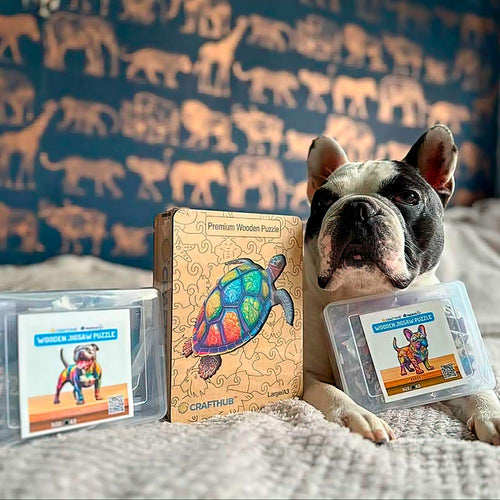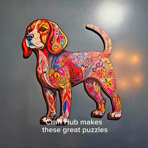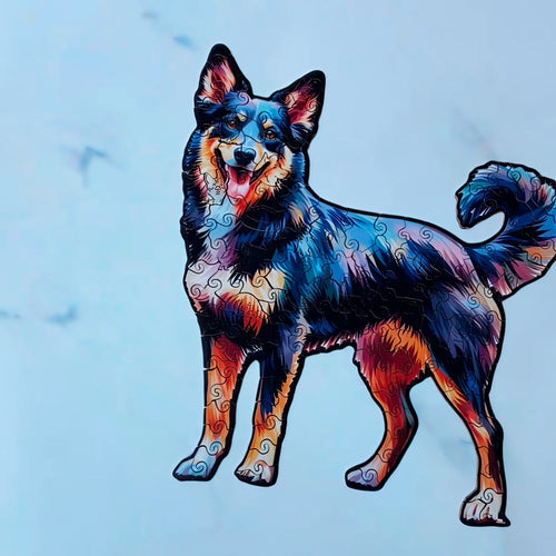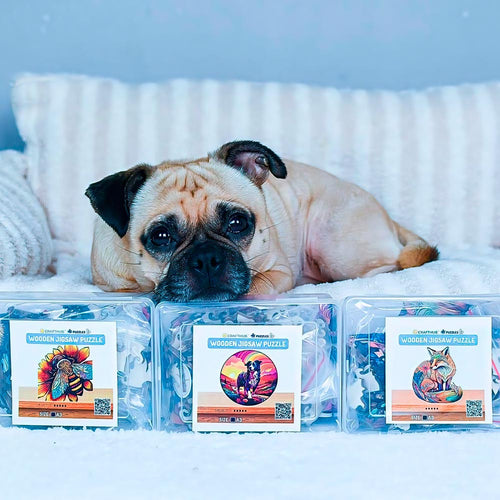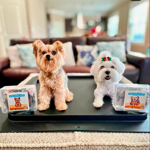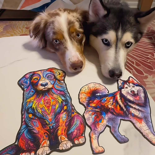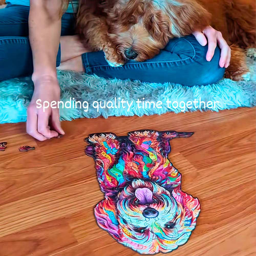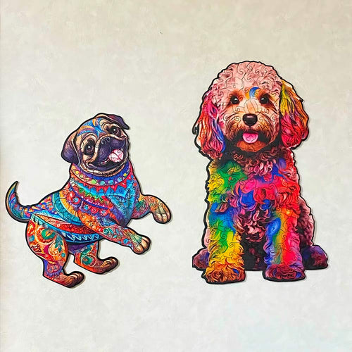 Träbitar av hög kvalitet i olika hundformer var lätta att manipulera utan att oroa sig för att de skulle falla sönder som ett traditionellt pussel.