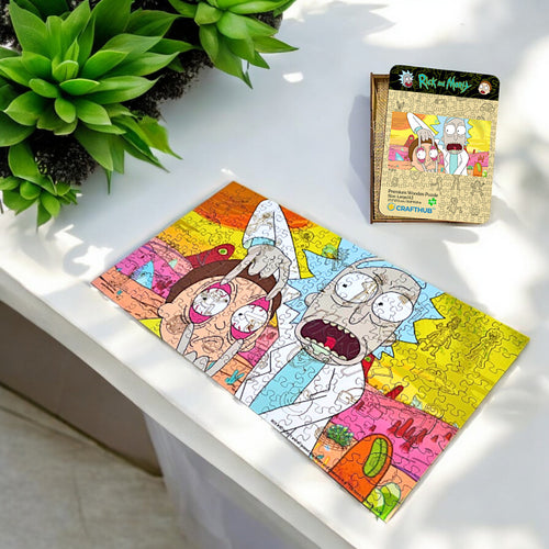 Det här pusslet är en fröjd för ögat! Färgerna är så klara och bitarna passar perfekt ihop. Den släta ytan och de funkiga formerna är fantastiska. Om du älskar Rick & Morty kommer du att älska det här!