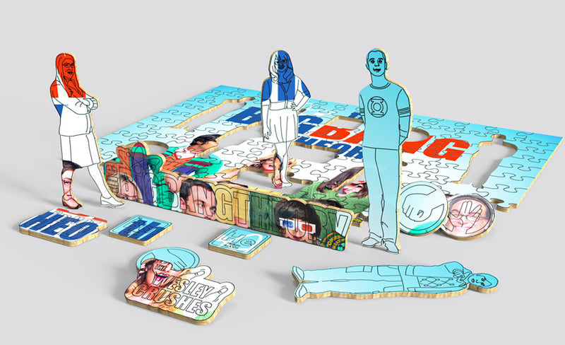 Fira seriens briljans med unikt formade pusselbitar som Sheldon, Penny, DNA-strängar, den ikoniska soffan, vetenskapliga element, Bazinga pratbubblor och mycket mer.