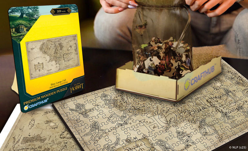 Ge dig ut på en episk resa genom Midgård med pusselbitar formade som Bilbo, Gandalf, Gollum, draken Smaug, Ringen och legendariska symboler från The Hobbit.