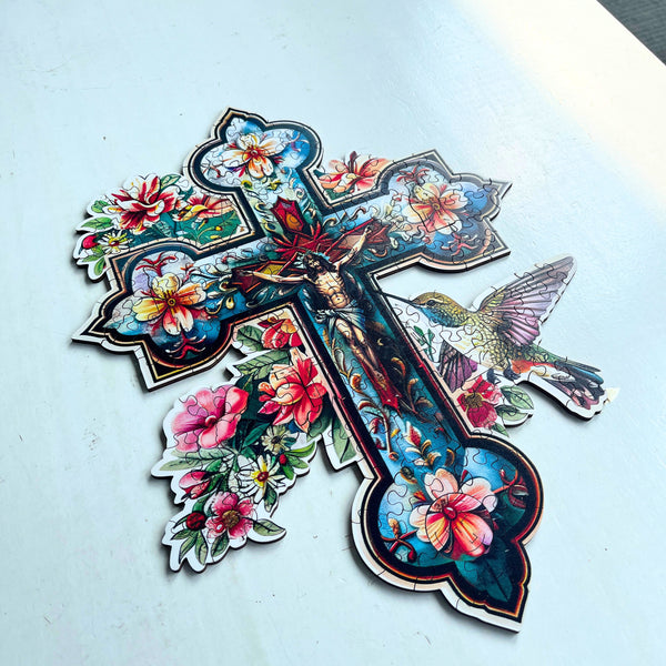 NÀr du lÀgger ihop pusselbitarna möter du symboler för tro och hÀngivenhet, t.ex. fridfulla kors, heliga biblar och vÀnliga duvor, som tillsammans utgör en hyllning till det kristna arvet.