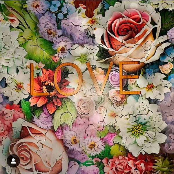 När du lägger det här pusslet kommer du att upptäcka kärlekens element, från de djärva bokstäverna ”L,O,V,E” till de ömma hjärtikonerna och blommiga blommönster.