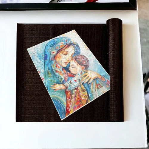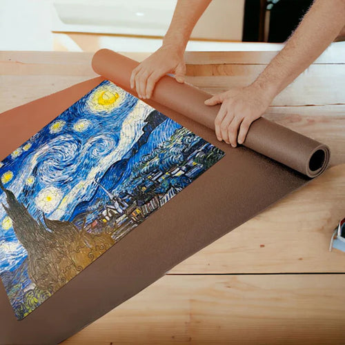 Denna väska är speciellt utformad för att säkra och förvara dina oavslutade pussel. Placera bara den hoprullade mattan inuti, dra åt dragsnöret och häng den säkert på väggen, i garderoben eller någon annanstans där det passar.