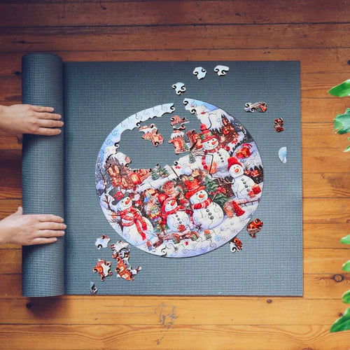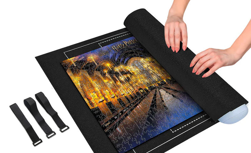 Mattan rullar ihop sig vackert och håller ihop pusselbitarna. Det kan finnas vissa separationer i de bitar som sätts ihop efter att mattan rullats ut, men det tar inte lång tid att fixa dem. Och det är ett mycket bättre alternativ än att lämna pusslet på bordet eller inte göra det alls.