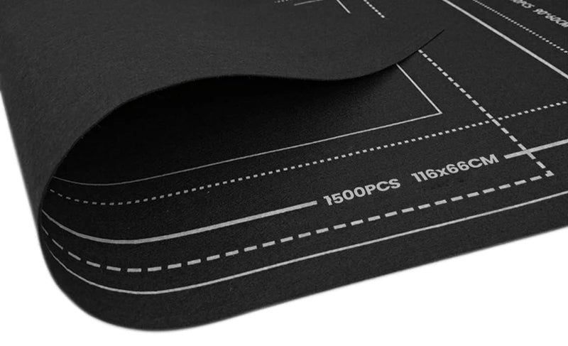 bitarPusselmattan, som är tillverkad av tjock premiumfilt, innehåller guider för pussel med 300 till 1500 bitar. Den svarta färgen gör det lättare att urskilja färgglada pusselbitar och minskar den visuella ansträngningen.