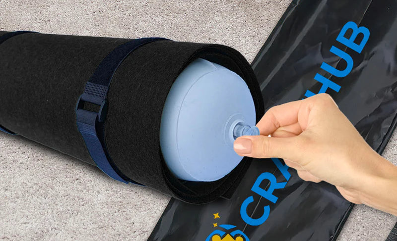 Vår uppblåsbara tub har en specialdesignad antispillficka som förbättrar hållbarheten jämfört med traditionella modeller. För att blåsa upp tuben är det bara att klämma upp fickan och föra in uppblåsningsnålen.
