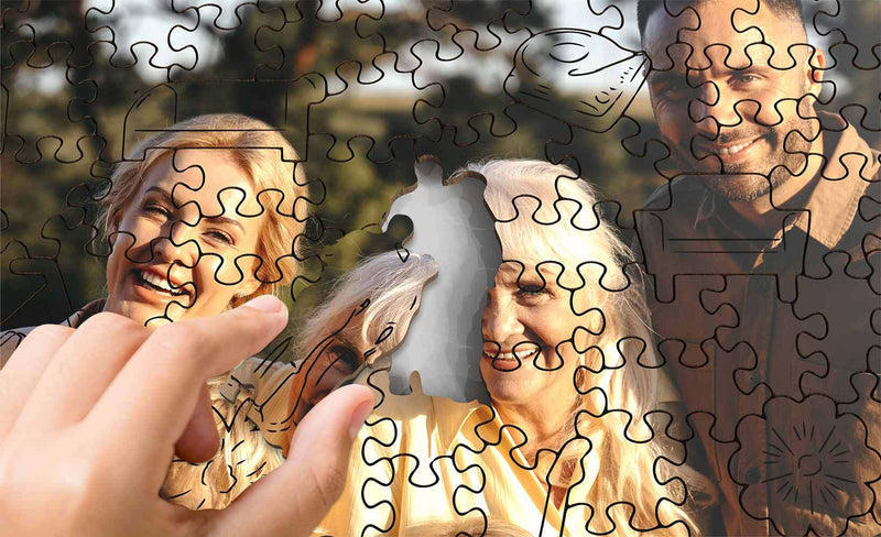 När du lägger ditt personliga pussel kommer du att upptäcka unikt formade bitar som ger en fantasifull touch till dina mest älskade ögonblick – och förvandlar ett foto du älskar till en lekfull och meningsfull upplevelse.
