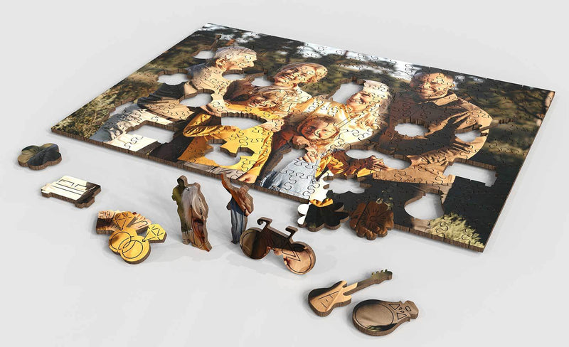 Varje pussel är tillverkat med distinkta snitt, högkvalitativt trä och precisionslaserskärning, vilket garanterar en perfekt passform och en exklusiv känsla i varje bit.